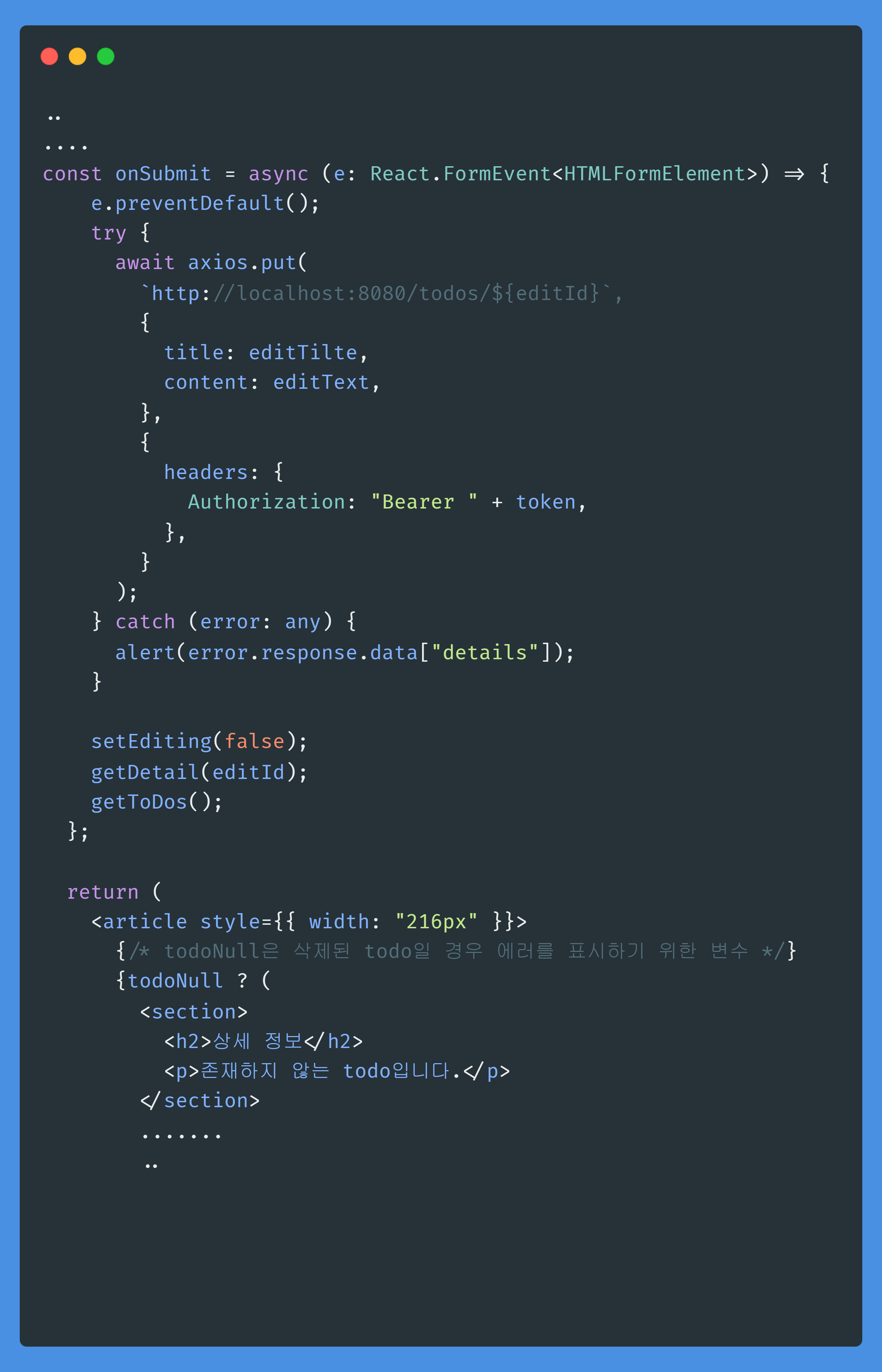 과제였습니다. 당시에 저는 에러가 나면 무조건 any를 남발하였기 때문에