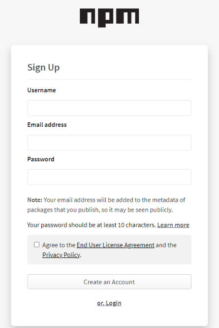 npm사이트에 자신이 만든 패키지를 만들려면 당연히 회원가입이 먼저죠