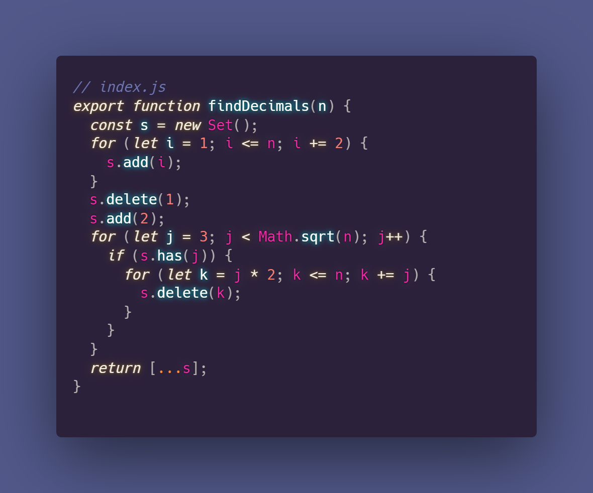 소수를 찾은 다음에 배열로 리턴하는 간단한 기능을 만들었습니다.